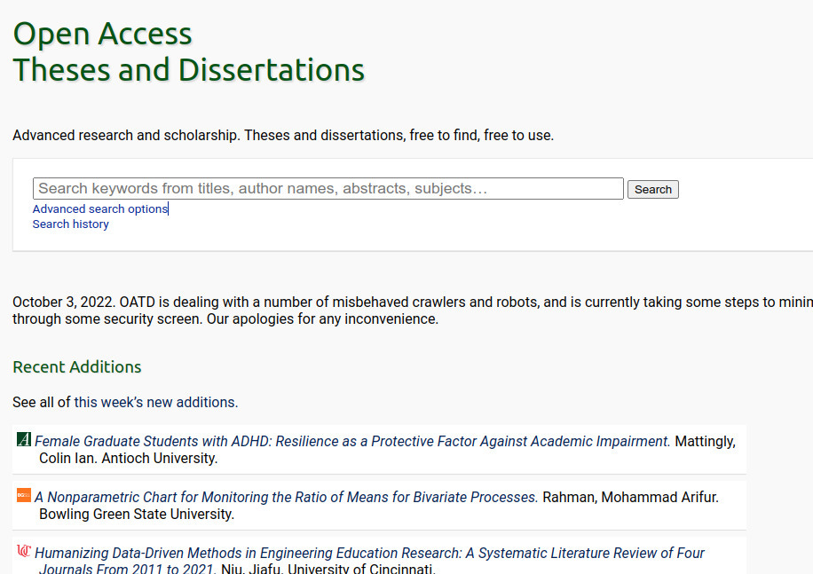 How do we investigate them? You can start by visiting oatd.org and search it for dissertations: